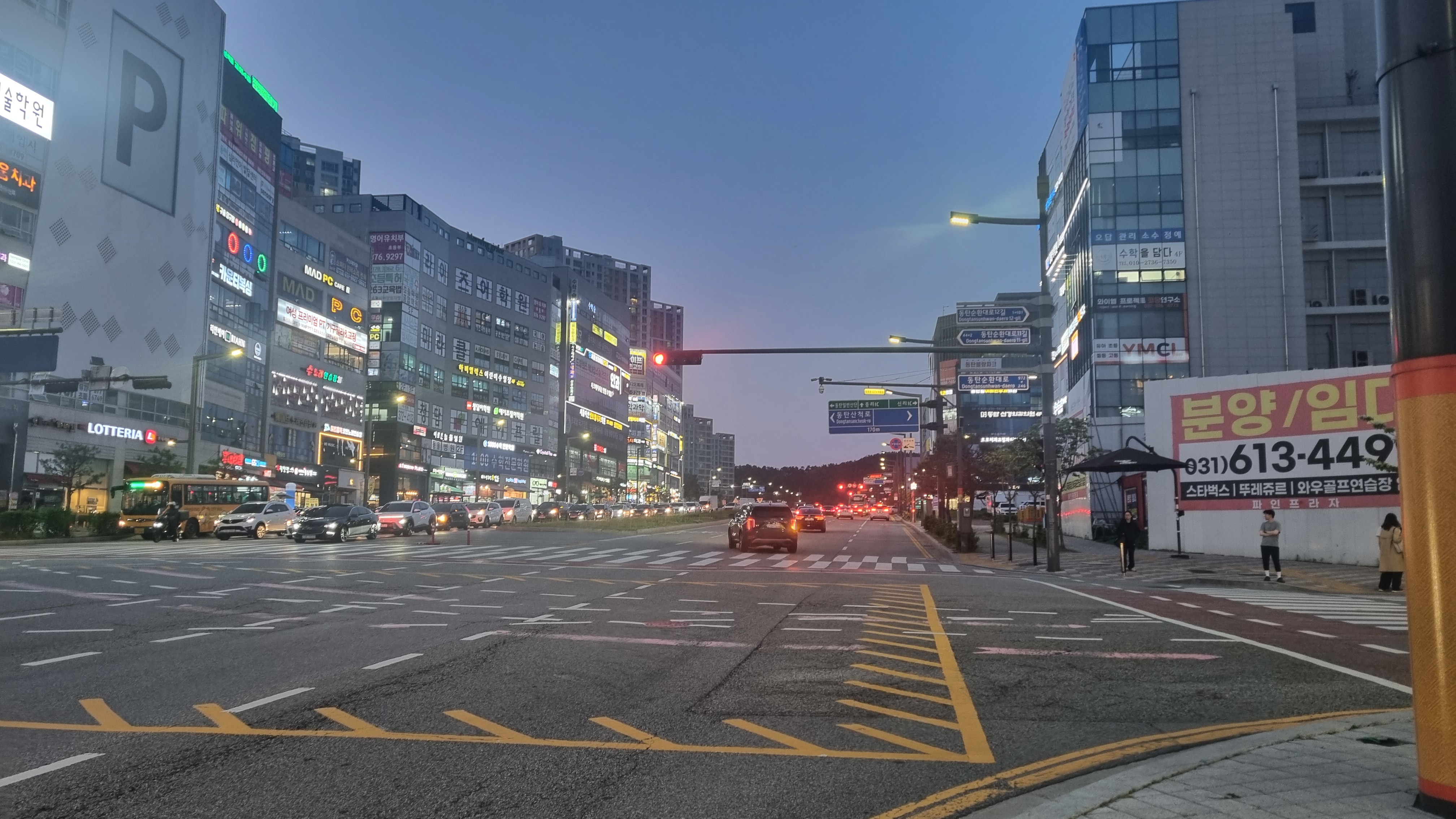 위쪽 상가로 걸어가봤습니다. 내리막길이라 5분 정도 걸렸고, 학원들 및 음식점, 헬스클럽 등 상권이 있는 것을 볼 수 있었습니다.